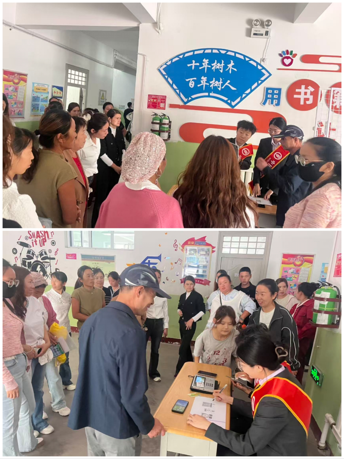 开学日当天,网点员工早早来到现场,仔细调试设备,布置场地,她们为学校老师演示一卡通系统操作流程,耐心引导家长通过农行APP扫码支付的方式快速缴纳学杂费,同时,为有需要的教职工办理手机银行开通等业务,将专业的银行服务“送”到校门口。这种高效、便捷的现代金融的服务,有效避免了家长们的奔波之苦,为开学日顺利进行保驾护航。