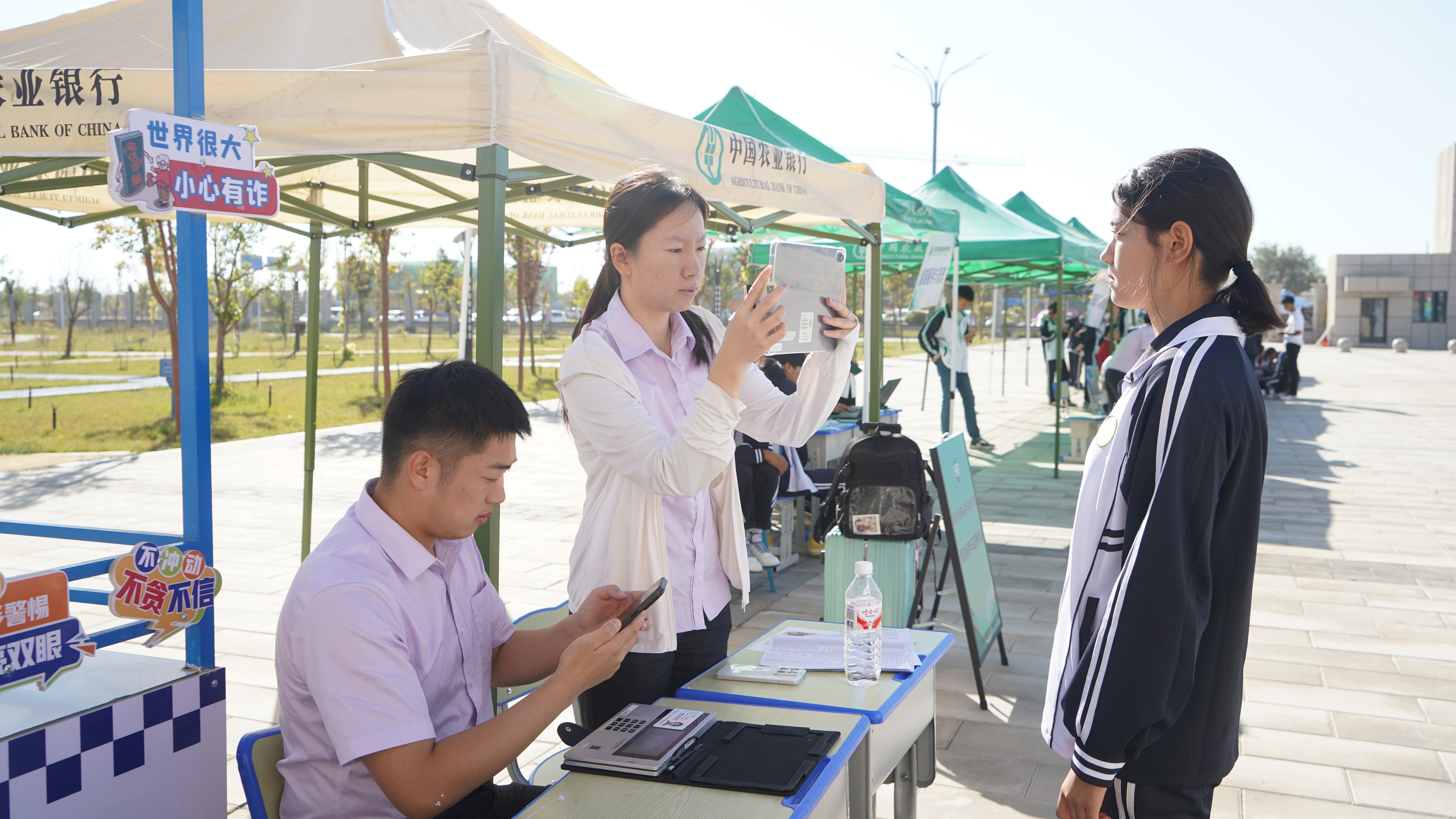农行塔城兵团分行行领导亲自带队,重点向校方推介并营销“智慧校园”综合服务项目。行领导深入阐释了该项目在提升校园管理效率、优化师生服务体验方面的显著优势,获得了校方的积极响应与认可。在行领导的指导下,党员同志与青年员工组成专业服务团队,集中为学生办理借记卡激活、信息采集注册“智慧校园”、掌上银行、食堂线上充值等业务,为学生在校生活及日常消费提供了坚实的金融保障,切实推动了校园生活的数字化与智能化升级。