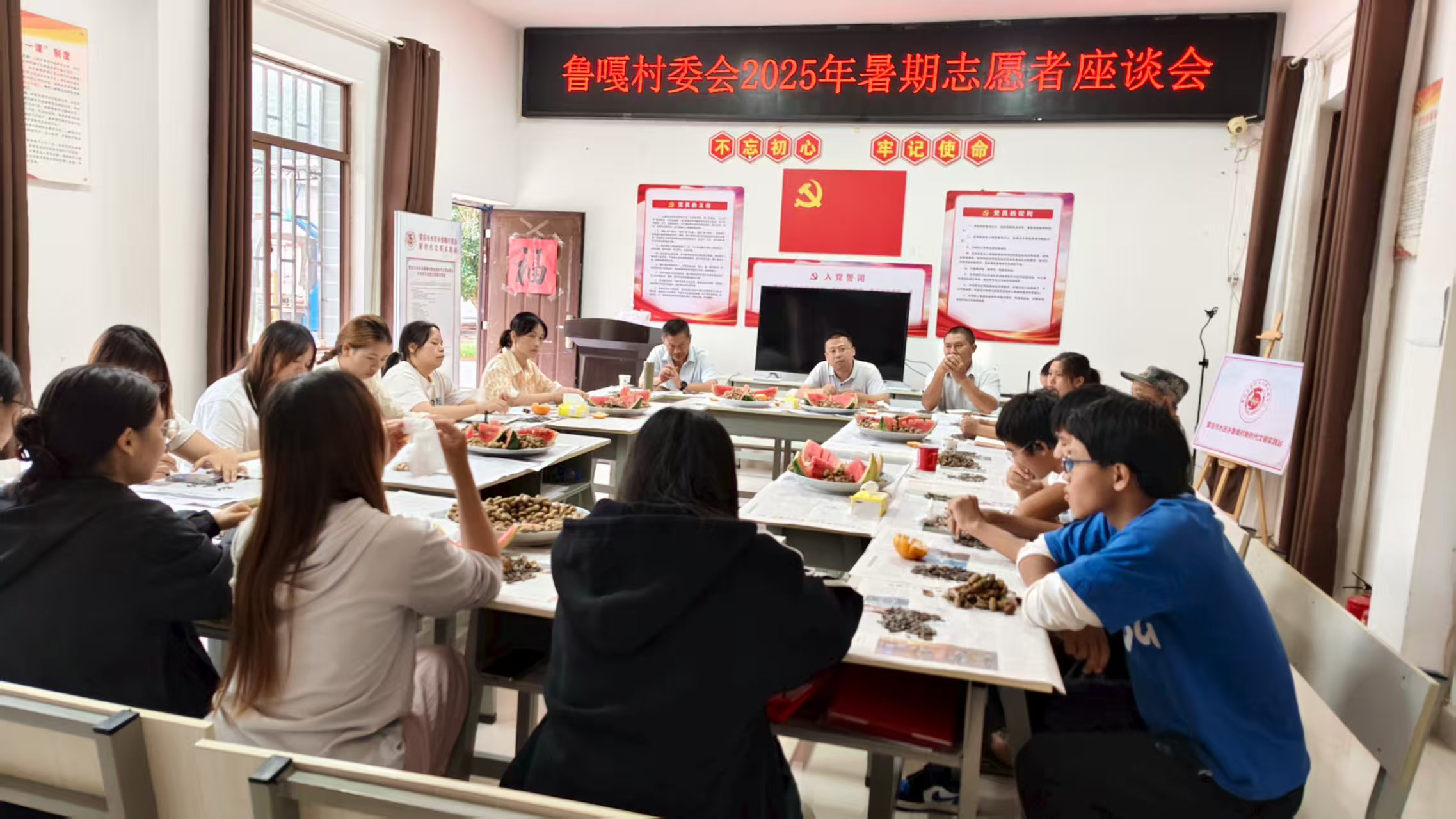 鲁嘎村委会于2021年起探索为暑期返乡学生搭建“返乡助农″社会实践活动平台,学生可参与政务实践、公益服务、乡村振兴等具体工作。坚持在双向赋能中培育人才:学生们在实践中贴近乡村真实需求,明确个人发展与乡土建设的结合点,逐步成长为懂农业、爱农村的“新农人”;学生们带来的新思维、新技术(如数字化助农方案),也为乡村产业升级和文化传播注入活力,实现人才培育与乡村振兴的良性循环。