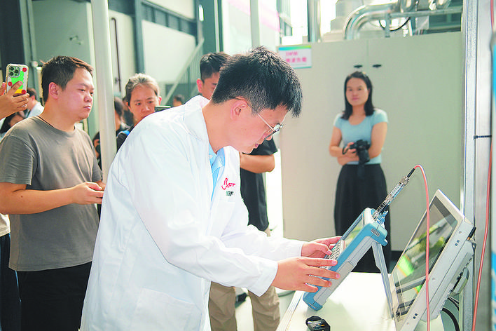 记者在现场看到,该加热系统分为发射器、输送管道、聚变堆天线等部分。研究人员介绍,发射器就如同一个“点火器”,且能够将“火苗”——射频波,进行“逐级放大”,将小小“火种”变作兆瓦级别的超大能量,最终完成对“人造太阳”中等离子体的“微波加热”。