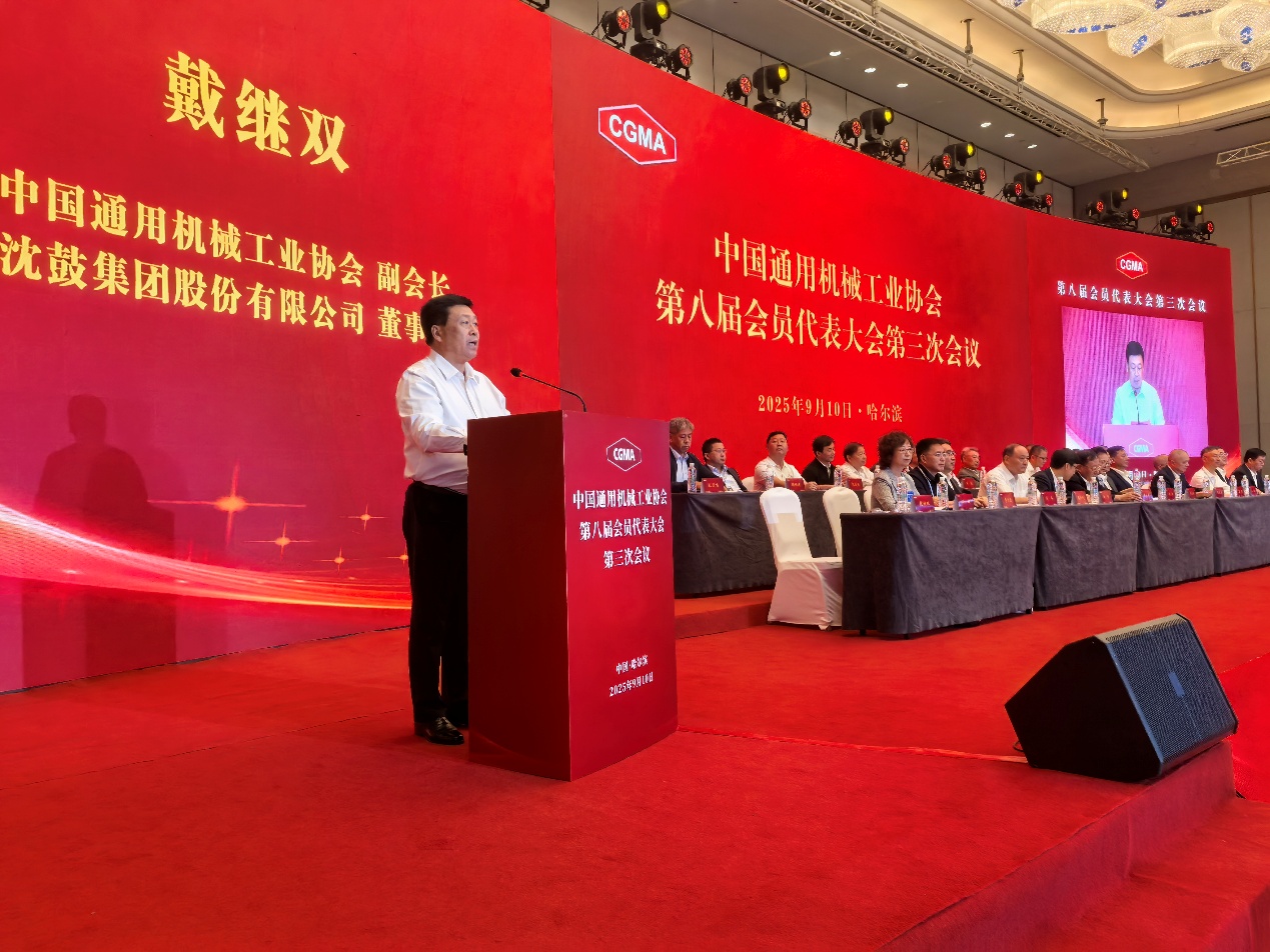 为总结过往工作成果、谋划未来发展路径、凝聚全体会员共识,中国通用机械工业协会于2025年9月10日在哈尔滨隆重召开第八届会员代表大会第三次会议。中国通用机械工业协会会长黄鹂,名誉会长隋永滨、苏永强出席会议,副会长张宗列,副会长兼秘书长孙放,第八届理事会副会长和常务理事、理事,监事会监事和会员代表共500余人出席会议,围绕通用机械行业创新驱动,产业协同展开深入交流,共商行业发展大计,共绘行业“十五五”发展蓝图。会议由中通协副会长戴继双主持。