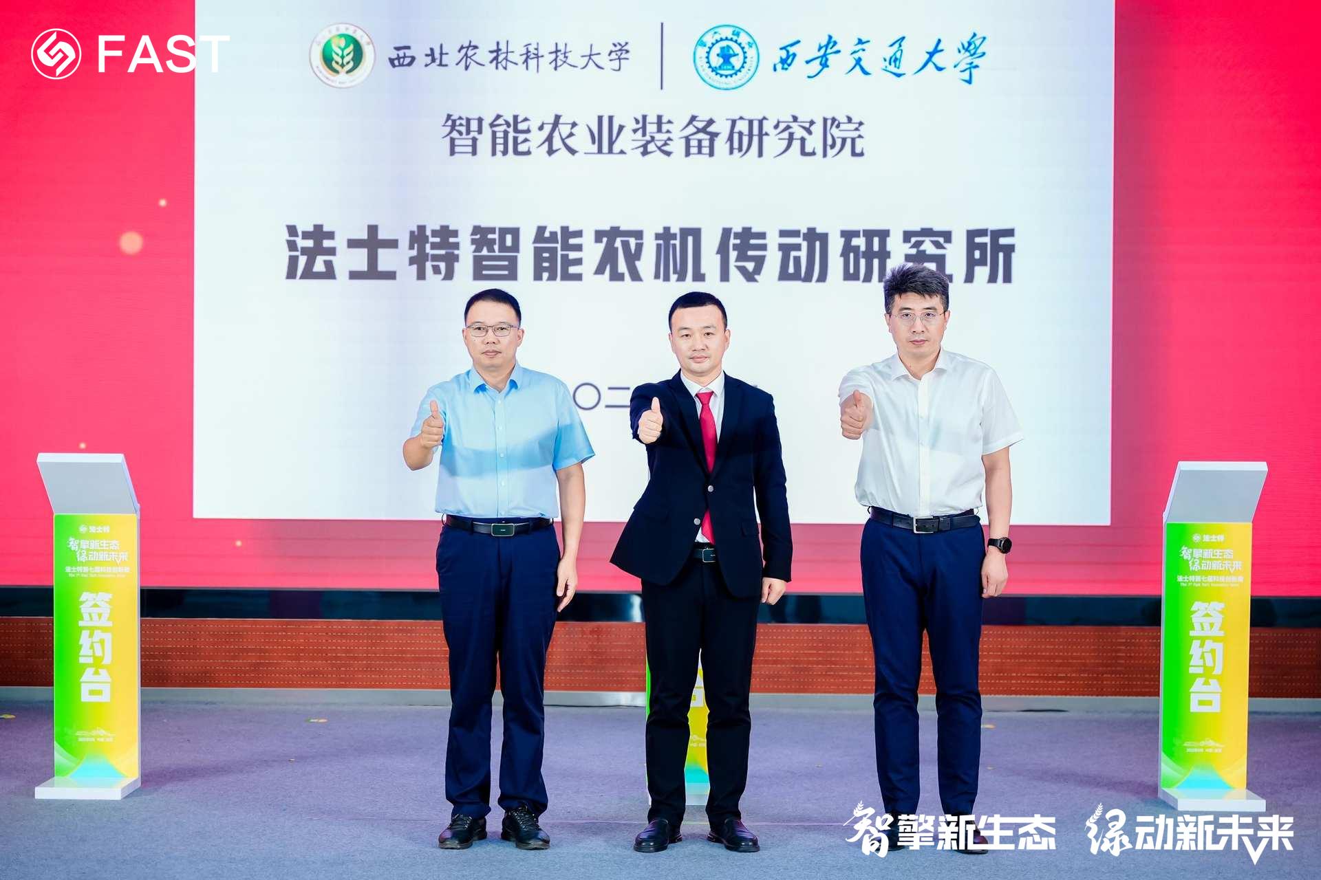 发布会上,法士特与西安交通大学、西北农林科技大学分别签署合作协议,联合共建“法士特智能农机传动研究所”,致力于在农机专用液压阀、电控系统、自动驾驶算法、新能源动力匹配等关键领域开展技术攻关与人才培养。