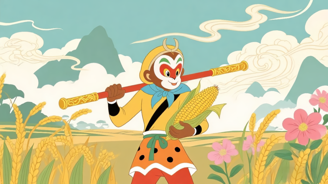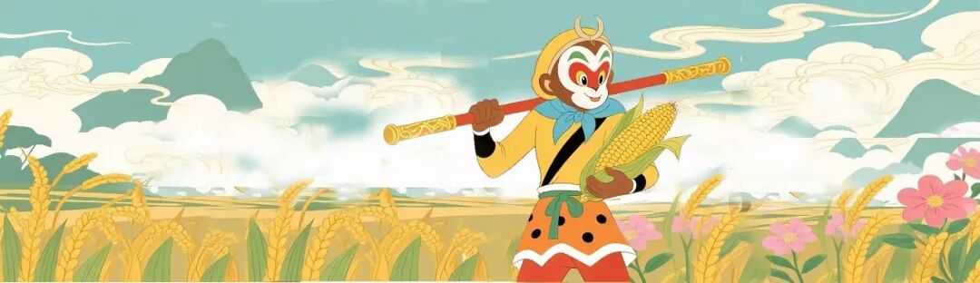 元素创新:画面中融入玉米、杂粮等娄烦特产,以及水帘洞、筋斗云等经典西游符号,叙事性强;