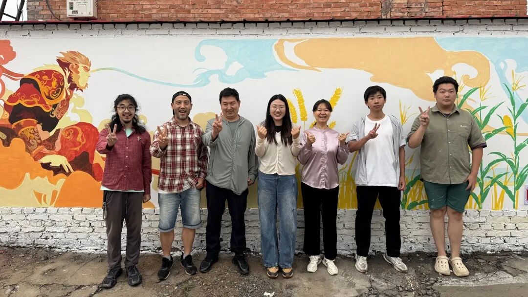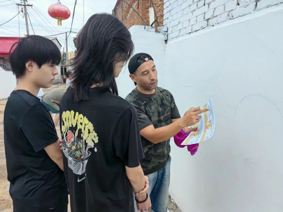 活动实施过程中,师生团队每日早出晚归,不畏酷暑,依程序推进起稿、上色、修正等环节,灵活应对现场挑战。他们不仅展现出优秀的专业素养和团队协作精神,得到了村领导班子和村民的高度认可和好评,更在与村民的交流中深入了解娄烦非遗文化与乡村振兴实践,增强了社会责任感与文化自信。