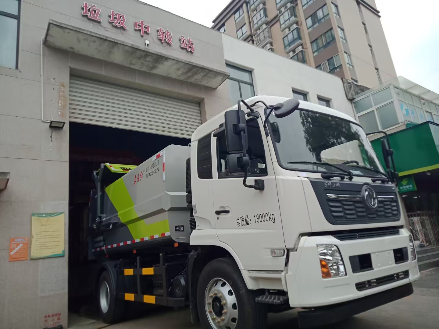 随即,一台“东方红”厢式垃圾车将两块总重4吨多的垃圾压缩块快速拉走(下图所示)。