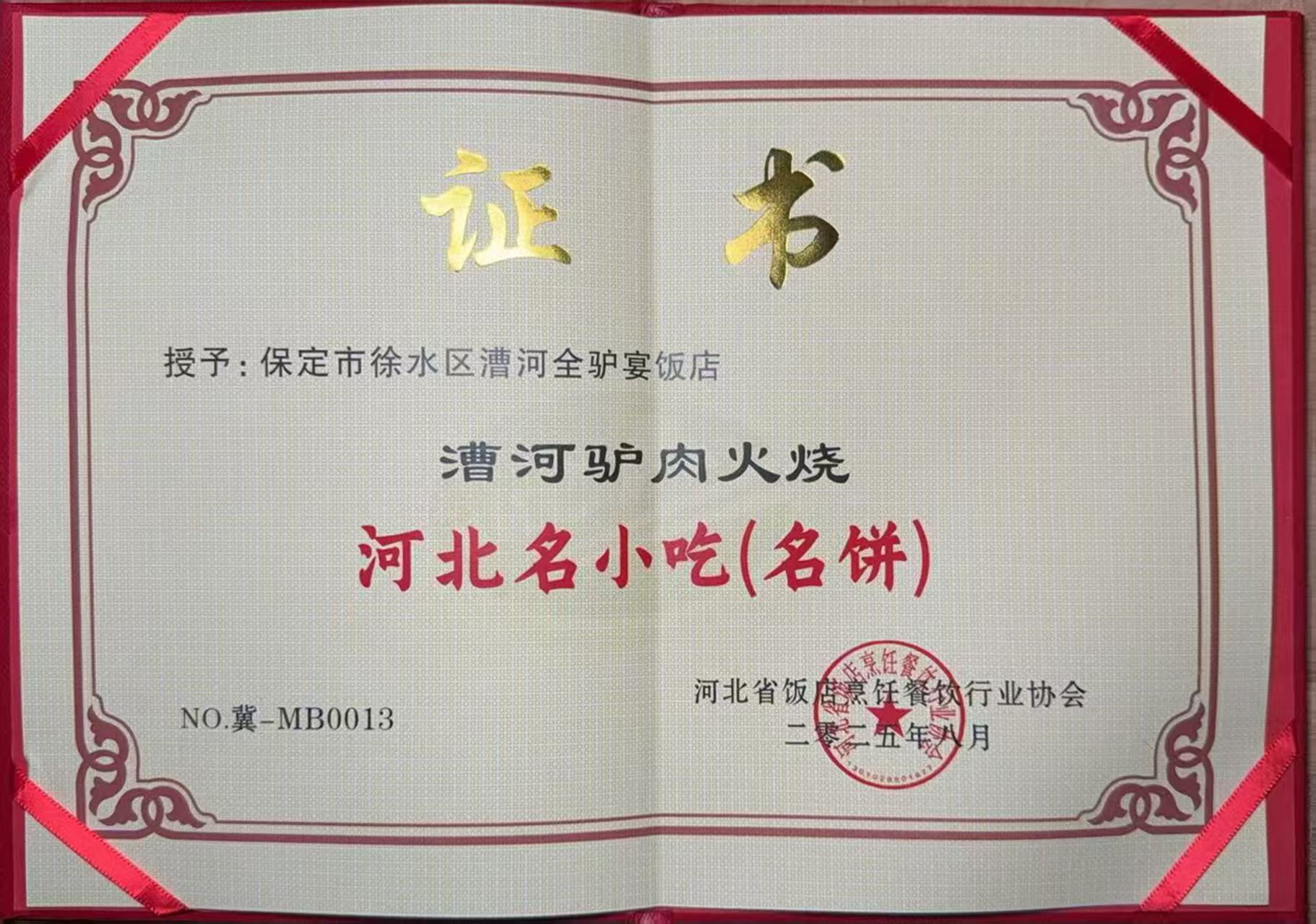 近日,由河北省饭店烹饪餐饮行业协会组织的“河北特色食材餐饮转化与推广大会”在石家庄举行。本次展会集合了省内众多餐饮食材、名小吃、名店等,为各商家提供了交流展示机会。展会中传来喜讯,保定“漕河驴肉火烧”经河北省饭店烹饪餐饮行业协会专家评审,被授予“河北名小吃(名饼)”称号。