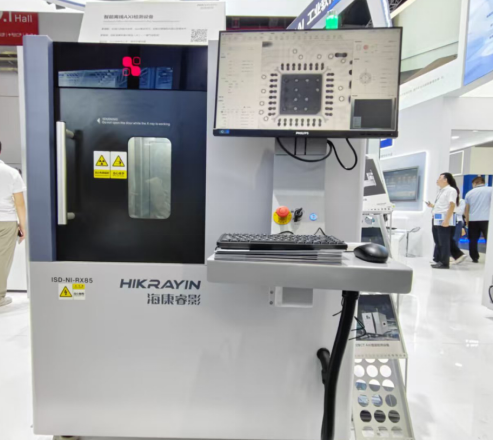 在X光技术展区,展示的智能离线AXI设备和工业CT设备,搭载海康观澜大模型,实现电路板焊接缺陷的高精度自动检测,检测效率可大幅度提升80%。