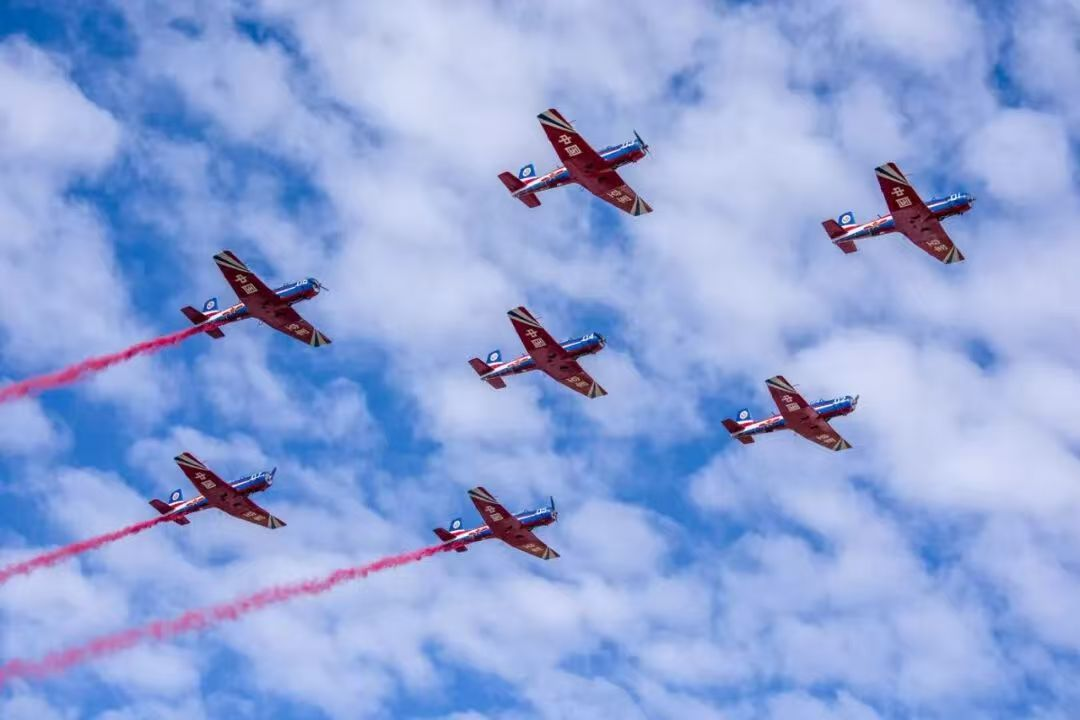 值得一提的是,本次大会多种型号表演机拥有“南昌血脉”。作为中国空军三支飞行表演力量之一,“天之翼”已成为传播航空文化、展示空军形象的一张亮丽名片。他们的表演用机初教-6型教练机是在南昌研发制造的,除了“天之翼”,另外两支“L15教练机”“中国商飞大飞机”表演队的表演飞机同样也拥有“南昌血脉”。“L15教练机”是航空工业洪都研发的双发超音速高级教练机,这款飞机的军用型教-10教练机作为我国最顶尖的教练机亮相了今年的九三阅兵。“中国商飞大飞机编队”里的C919的前机身和中后机身两大机体结构部件都在南昌生产,约占机体的25%;大批C909飞机的试飞和交付在位于南昌的中国商飞江西生产试飞中心完成。(文/朱敏 图/南昌高新区融媒体中心)