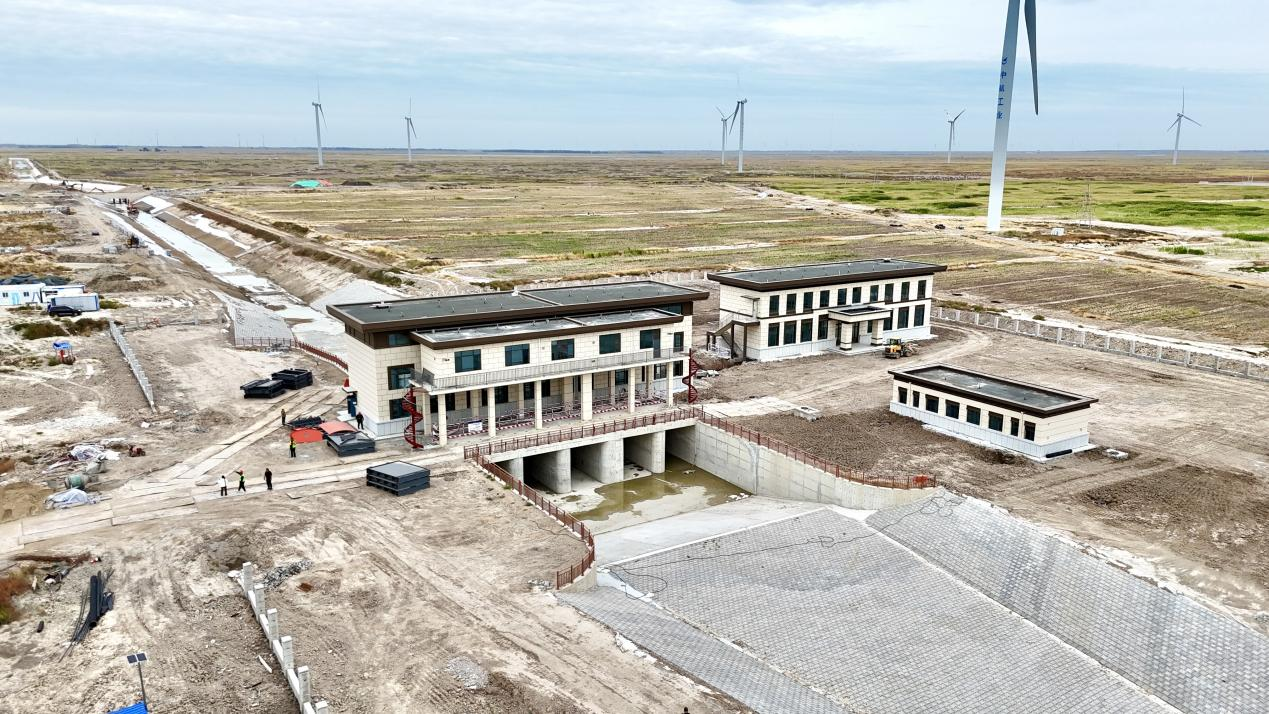 中交路建吉林盐碱地项目位于吉林省白城市大安市境内,是吉林省“千亿斤粮食”工程的重点水利基础设施建设项目,全长133.24公里,主要包含泵站、桥梁、水闸、涵洞、倒虹吸、跌水、渠道。其中幸福3#泵站为幸福排干第3级提水泵站,泵站等级3级。设计流量为每秒10立方米,最小流量为每秒2.5立方米,设计扬程4.3米,装机容量5/185千瓦。新建建筑物总建筑面积1309.52平方米,是项目关键性水利设施之一。