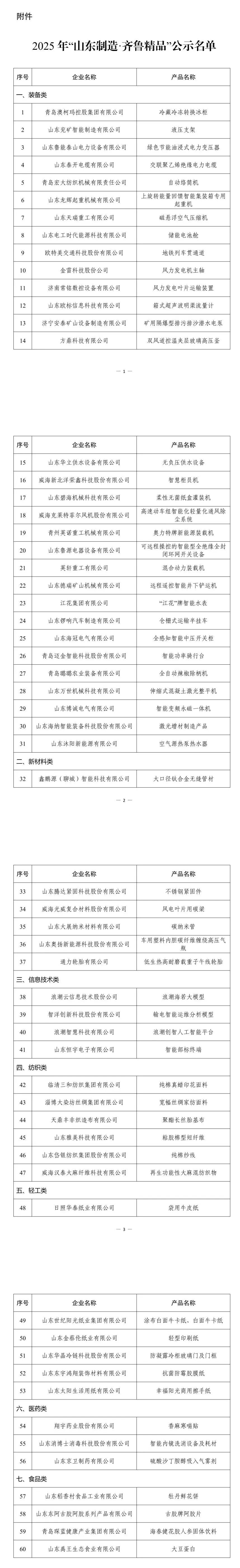 9月23日,山东省工业和信息化厅公示了2025年"山东制造·齐鲁精品"名单,60个产品拟入选。