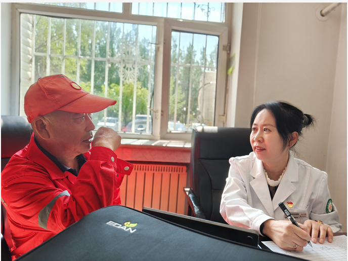 第六作业区健康小屋作为健康管理“前哨站”,配备HC5健康一体机以及血压仪、血糖仪等专业设备,全天候向员工开放。尤为突出的是,作业区选拔具有临床经验及医疗资质的员工成为专职健康医,为员工提供“零距离”医疗服务。健康医实行“定点服务+动态巡查”双轨制:一方面,在健康小屋为员工提供日常指标检测和健康咨询;另一方面,携带便携式“健康背包”随时响应现场突发情况,实现“岗前岗中岗后”全时段健康监护。