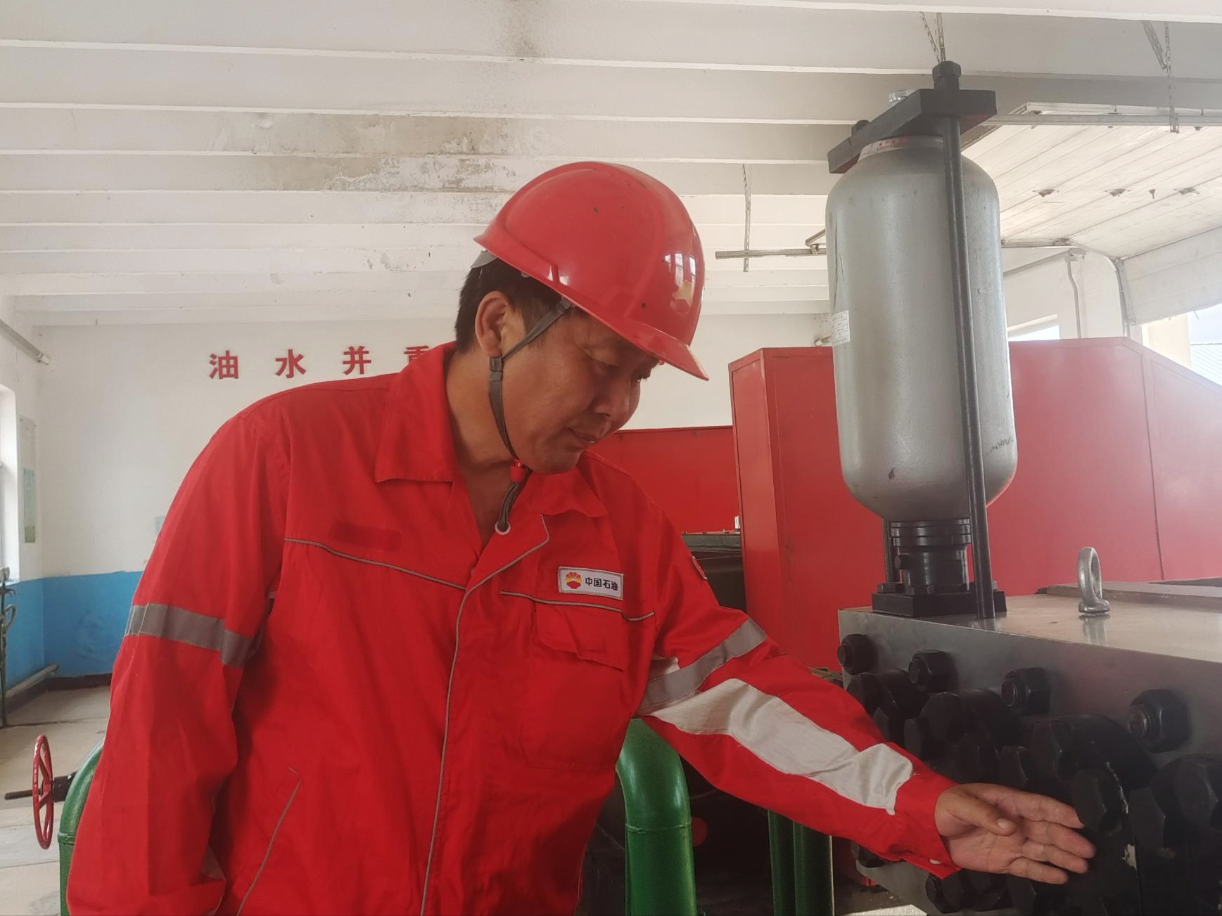考虑到班组里其他人在外巡井,夏野立刻跑去工具间,带上手电筒、扳手、新盘根等,赶回泵房独自抢修。他关上阀门、卸螺丝,弓着身子抠旧填料、码新盘根,汗水顺着脸颊滴落,也没空擦拭。