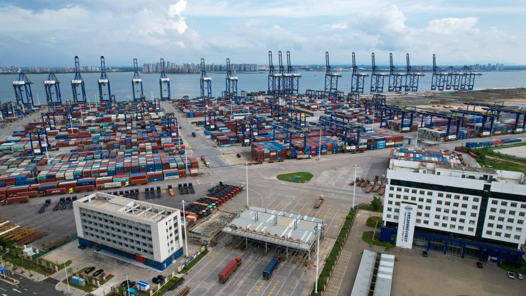 海南洋浦国际集装箱码头(新华社记者杨冠宇摄,无人机照片)