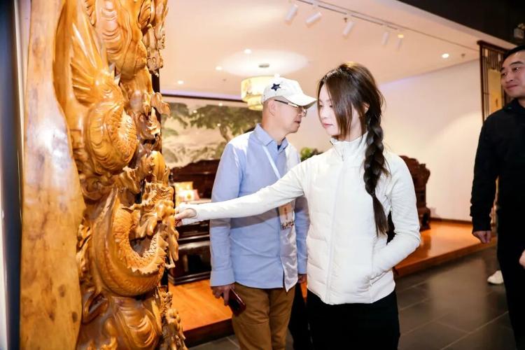 网络名人一行走进阳谷县状元红文化家具有限公司展厅,目光所及处,融合阳谷木雕技艺的工艺品与红木家具静立其间。细腻如丝的雕刻纹理与精妙考究的造型设计搭配得当,将“因材施艺、形神兼备”的木雕精髓展现得淋漓尽致。