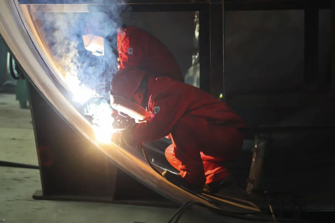 “慢工出细活”的背后,是对质量的极致追求。没有“抢进度”的匆忙,只有“磨细节”的专注。焊接工人手持焊枪,以毫米级精度控制熔池流动;质检员手持测厚仪,逐道检查焊缝余高;技术员蹲守现场,实时记录焊接参数变化。这种施工节奏,反而让生产效率得到质的提升——通过合理分散施工节奏,工人无需连续高强度倒班,劳动强度降低约30%,工作状态更稳定;提前完成的焊接工序更为后续罐体组装、试压等环节留出了充裕调试时间,整体项目进度可控性大幅提高。