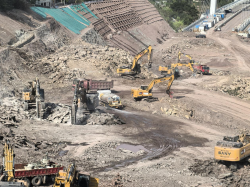 面对着土石方开挖量大、运输距离远、组织协调难度大、连续作业时间受限等多重考验,项目部第一时间调整施工计划,优化开挖方案,成立工程节点领导小组,提供技术支撑和服务,并多次召开专题讨论会,合理规划弃土时间路线,加快施工进度;优化资源配置,投入挖掘机12台、破碎机10台、渣车120台等各类土石方作业机械,24小时进行土石方开挖工作,为项目工程建设赢得时间、争取主动。