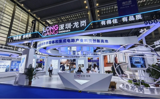 其中,深圳龙岗区作为兼具研发设计与生产制造功能的产业聚集区尤为亮眼,其半导体与集成电路产业链企业超过200家、产业规模突破千亿级,占全市总量近一半。此次“湾芯展”备受瞩目的国产电子设计自动化(EDA)软件及被誉为“中国标尺”的90GHz超高速实时示波器均来自于这里,全产业链集聚效应逐渐显现。