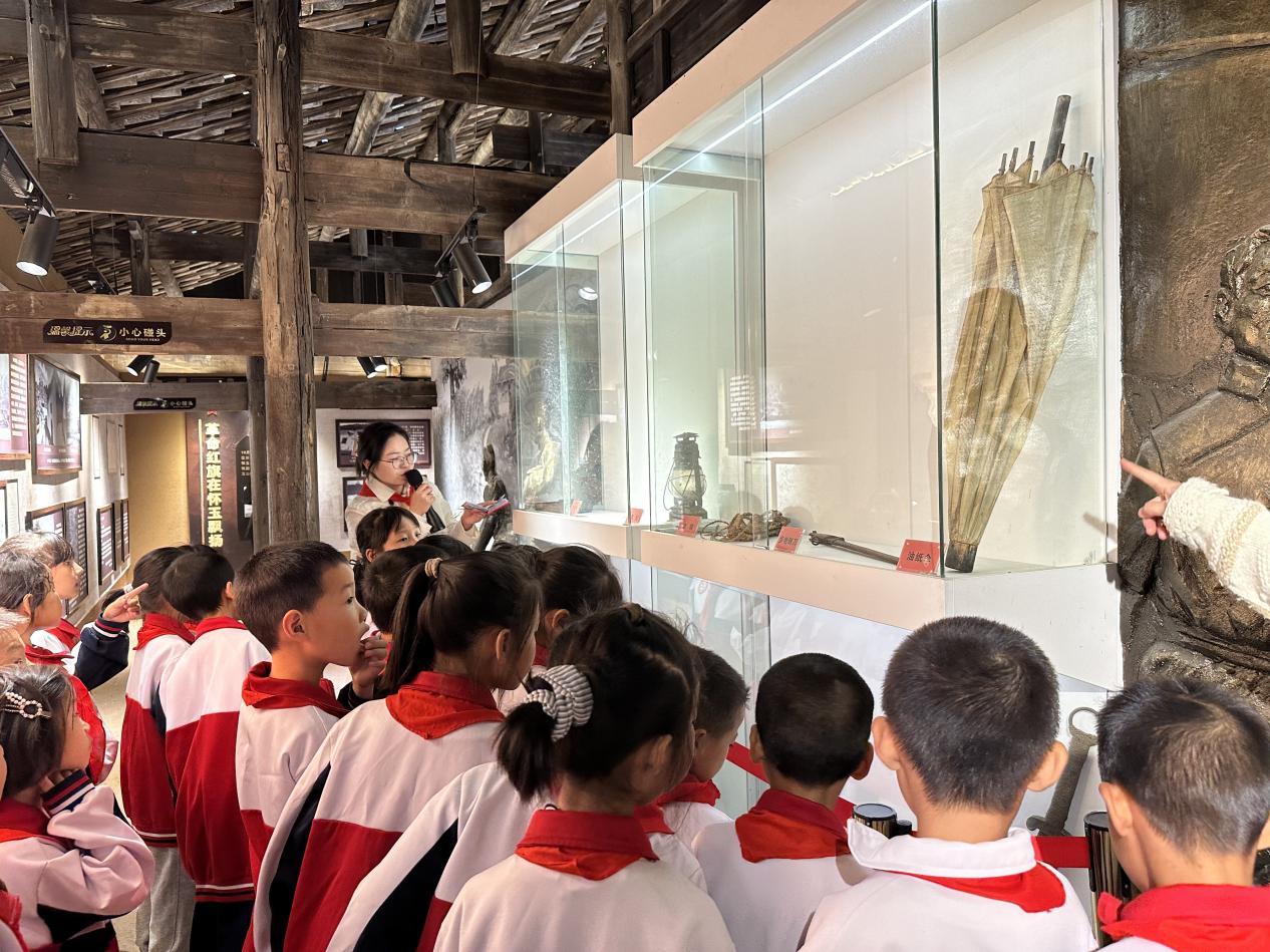 走进独立营旧址,红缨枪、大刀、土枪等武器装备,以及红军包、热水壶、草鞋等生活用品整齐陈列。曹静老师逐一介绍这些老物件背后的革命故事,当队员们得知红军战士在艰苦条件下只能打地铺睡觉时,队员们驻足凝视,深切体会到革命先辈不畏艰难、艰苦奋斗的精神,纷纷表示要珍惜当下的美好生活,以先辈为榜样努力学习。