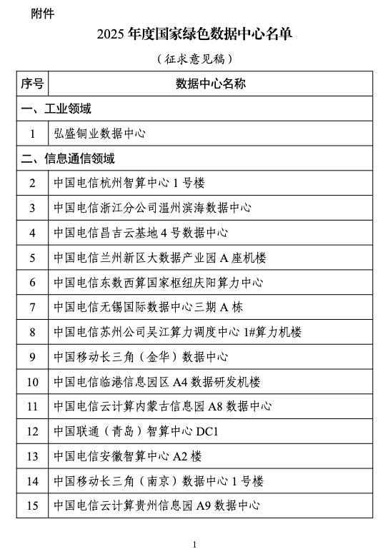 附件:2025年度国家绿色数据中心名单(征求意见稿)