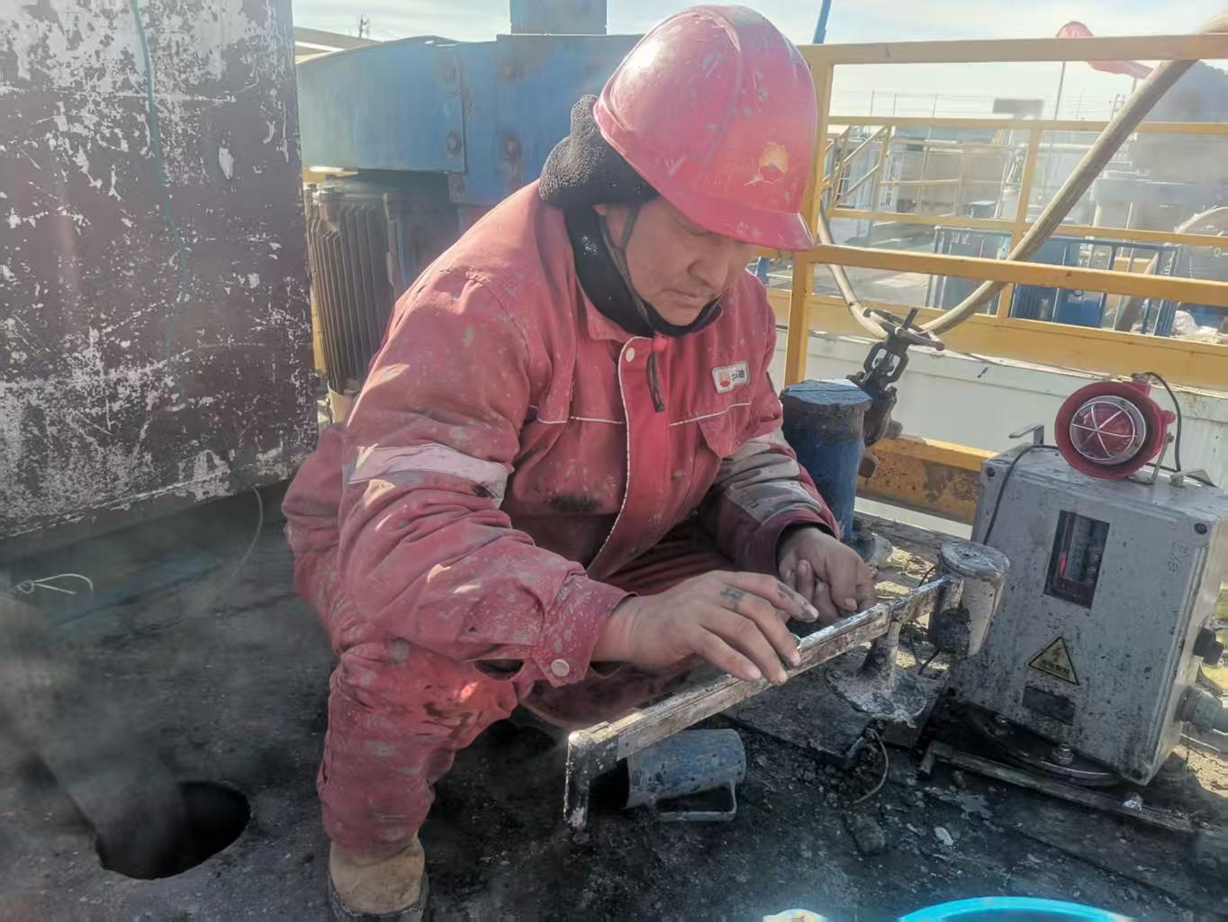 施工指令下达后,30136钻井队全体员工迅速进入状态,以“24小时不停歇、环节衔接无间隙”的节奏投入到生产施工中。当第一缕阳光洒向井场时,司钻倪海军已在操作台前坚守了6个小时,酸涩的双眼已经被他揉的通红,可依然紧盯着仪表盘上的扭矩、钻压数据,精准操控钻机手柄,将井眼轨迹误差控制在±0.5度以内——“每一个数据的波动都可能影响井身质量,咱们不能给后续作业留隐患。”正午时分,地表温度虽有回升,但钻井液循环罐旁的副司钻王金龙依旧穿着厚重的工装,每隔15分钟便测量一次钻井液的黏度、密度,汗水顺着安全帽带滑落,他却只依然在记录本上快速标注数据:“这口井的地层复杂,钻井液性能不能出半点差错,稳定住了才能顺溜。”