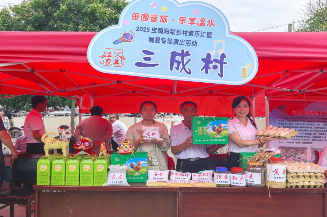 陇县温水镇三成村干部推荐特色农产品活动现场