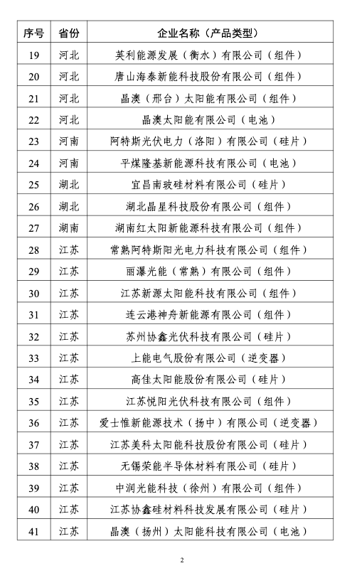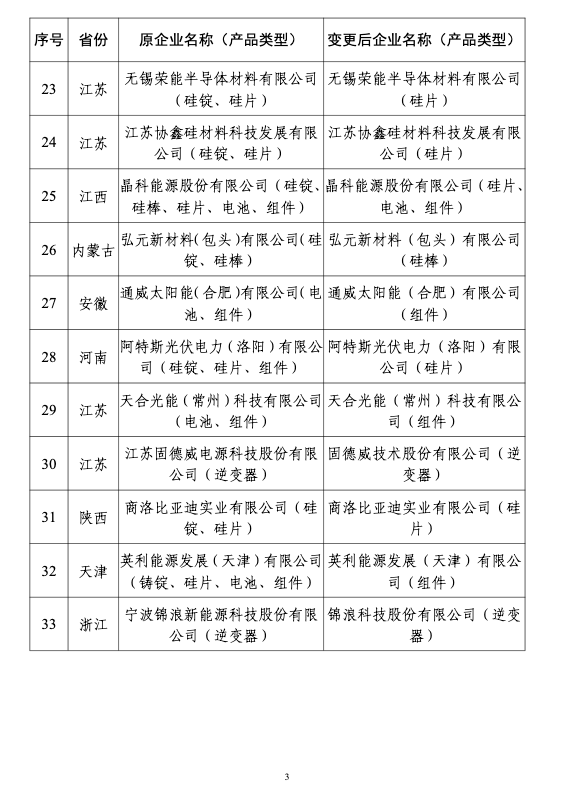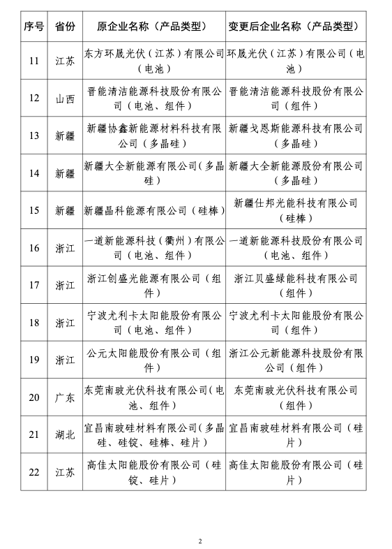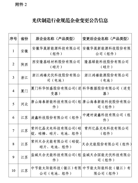 2.光伏制造行业规范企业变更公告信息