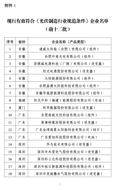 附件:1.现行有效符合《光伏制造行业规范条件》企业名单(前十二批)
