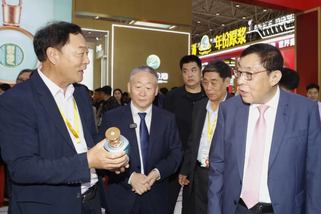 巡馆环节,云门酒业集团党委书记、董事长汲英民(左一)向巡馆嘉宾第十二届全国政协副主席马培华(右一),中国酒业协会理事长宋书玉(左二)介绍云门产品及企业发展情况,赢得了各位领导的高度认可