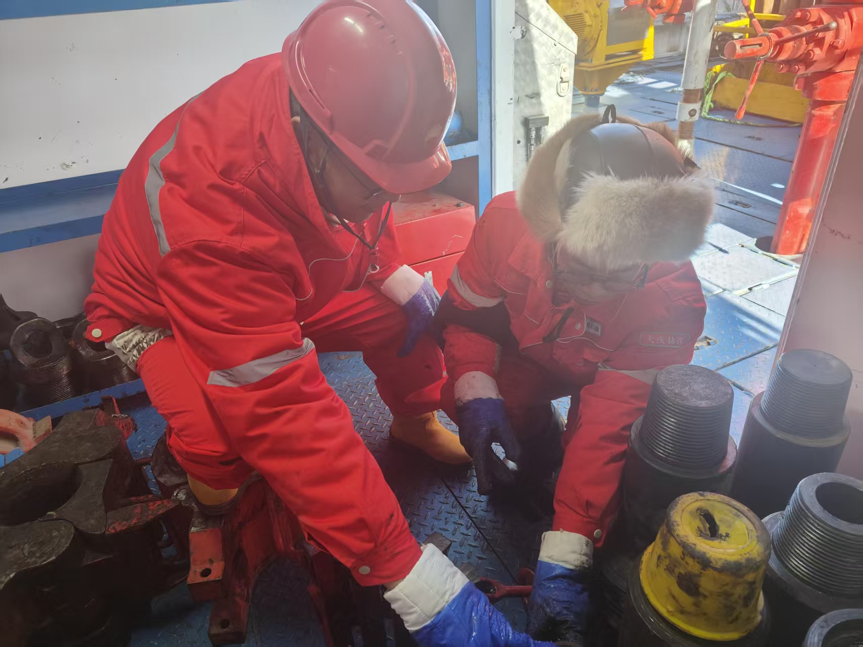 战略引领加帮扶,双核动力夯根基。今年3月,钻井二公司党委以赓续精神血脉、传承钢铁基因为主线,以“千万工程”为重点,结合公司实际组建钢铁航母舰队、尖刀联合战队,构建星火燎原的成长格局。在此框架下,联合战队的联动作战机制与党建项目化的联培共带机制协同发力。施工前,JD1202钻井队(尖刀远征队)率先行动,平台经理带领倒休人员全程驻队70373,进行通过“手把手”教学快速解决了该队新设备适应与基础技术问题;施工关键期,1205钻井队(钢铁航母舰)选派技术骨干,以“联培共带”为基础开展“结对帮带”,针对取心工具选型、岩心保护等关键环节进行全程跟踪指导,共同确保了“党建+生产”的深度融合与队伍技术能力的全面升级。