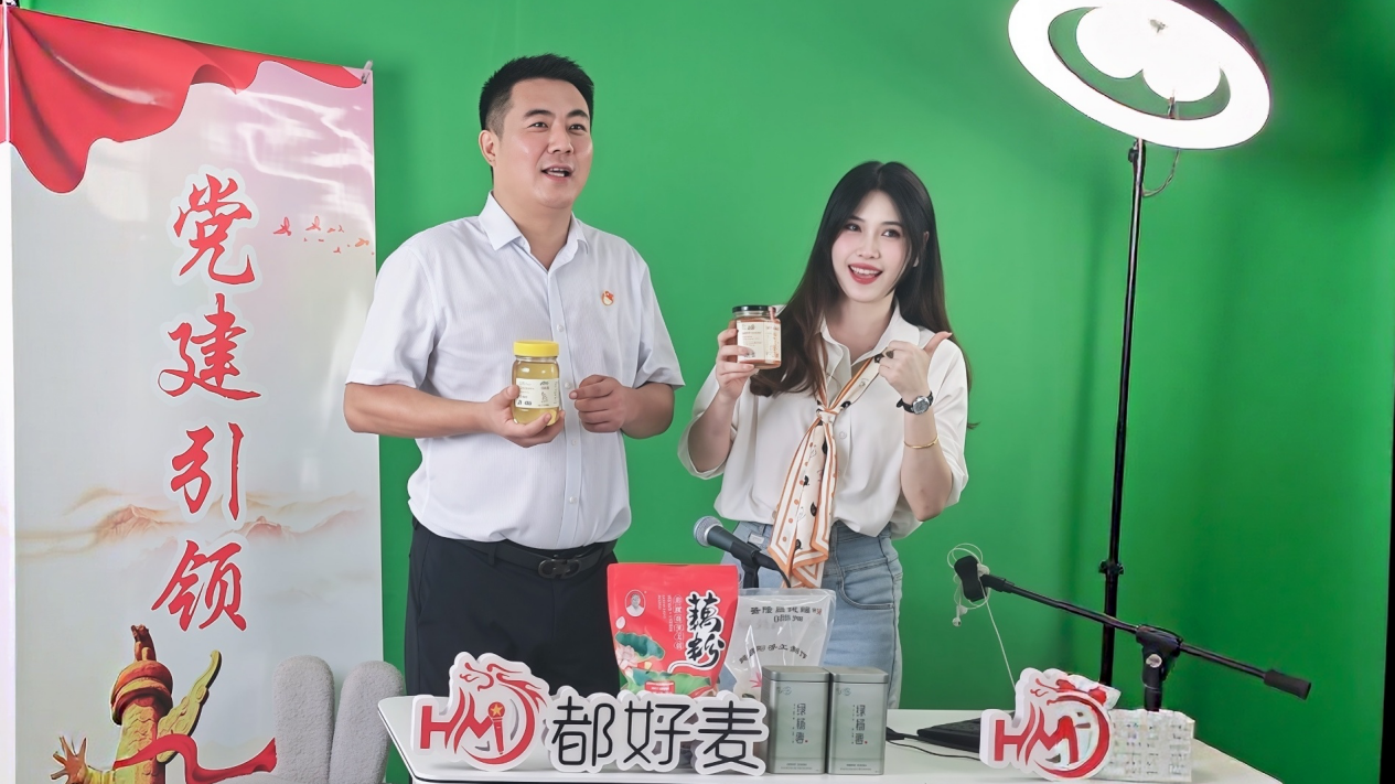 在村党总支的牵线搭桥下,从场地协调到资源对接,直播项目一路“绿灯”。如今,驿站门口的“党建引领乡村振兴”标牌,成了村里的一道风景线。