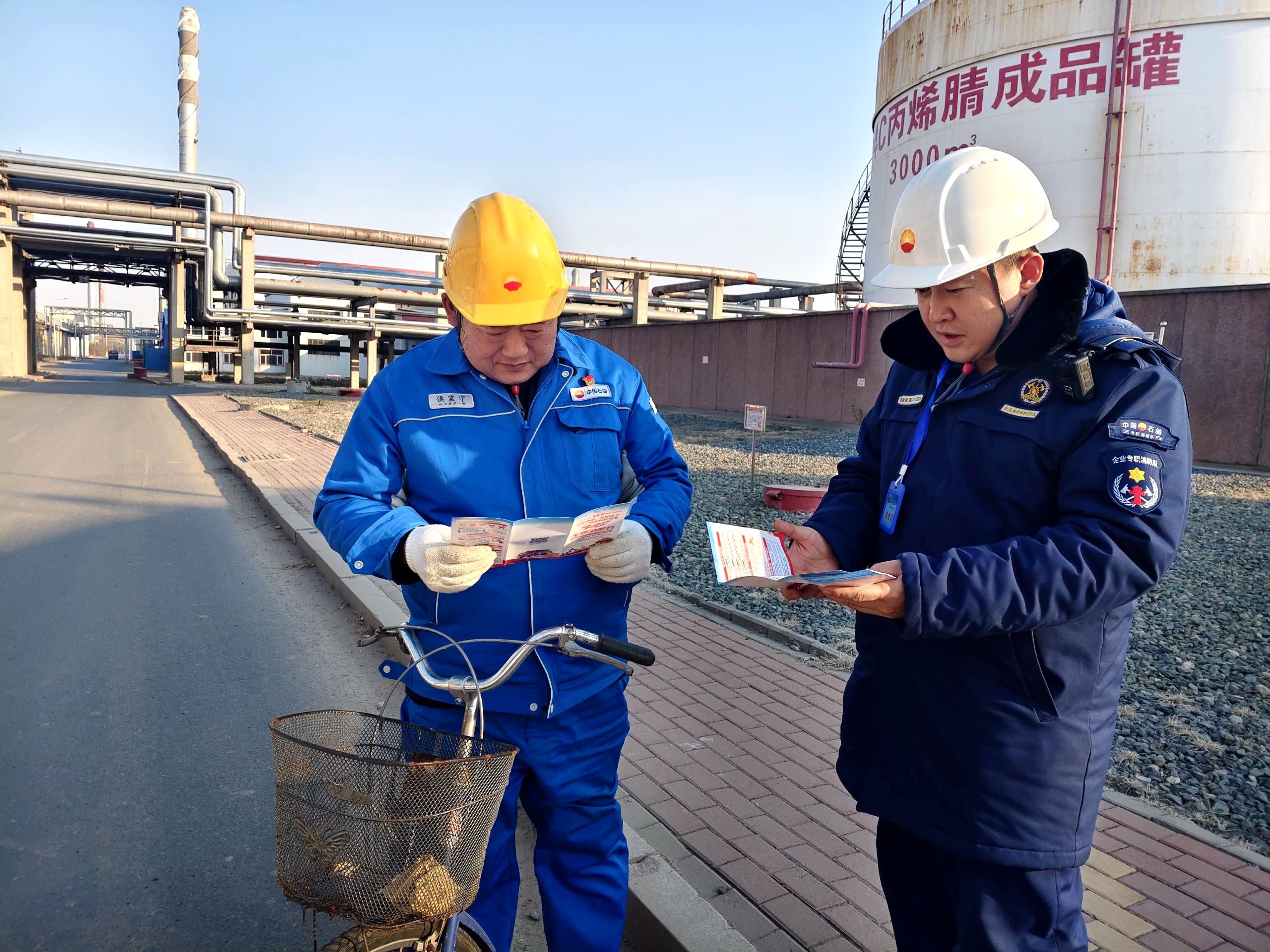 炼化消防大队宣传员结合辖区重点单位易燃易爆危化品多、火灾风险系数高的特点,将“理论讲解+资料发放”有机结合,让消防安全知识真正“入脑入心”。宣传员走进各厂区车间,一边向企业员工发放精心制作的《消防安全手册》宣传资料,一边用通俗易懂的语言讲解火灾的危害性、日常火灾隐患排查要点,重点围绕石油化工企业常见的设备管线泄漏、原油储罐起火等风险场景,详细介绍初期火灾扑救的正确方法、灭火器与消防栓的规范使用步骤,以及不同类型火灾的针对性应对策略。