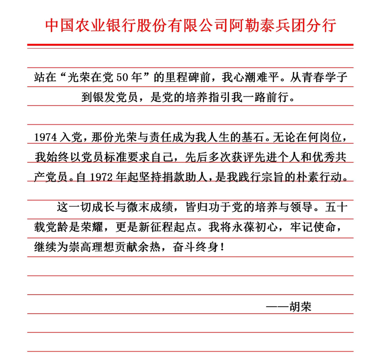 此次慰问活动,不仅是一次荣誉的授予,更是一次精神的传承。它进一步增强了老党员的荣誉感、归属感和使命感,也激励着农行阿勒泰兵团分行全体员工见贤思齐,在新时代新征程上展现新担当、实现新作为。