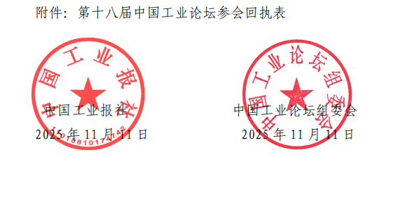 为认真贯彻落实党的二十届四中全会精神,深入推进新型工业化,加快发展新质生产力,推动经济高质量发展,中国工业报社在中国工业经济联合会、中国企业联合会、中国机械工业联合会等支持下,拟定于2025年12月15日-16日,在北京举办第十八届中国工业论坛。