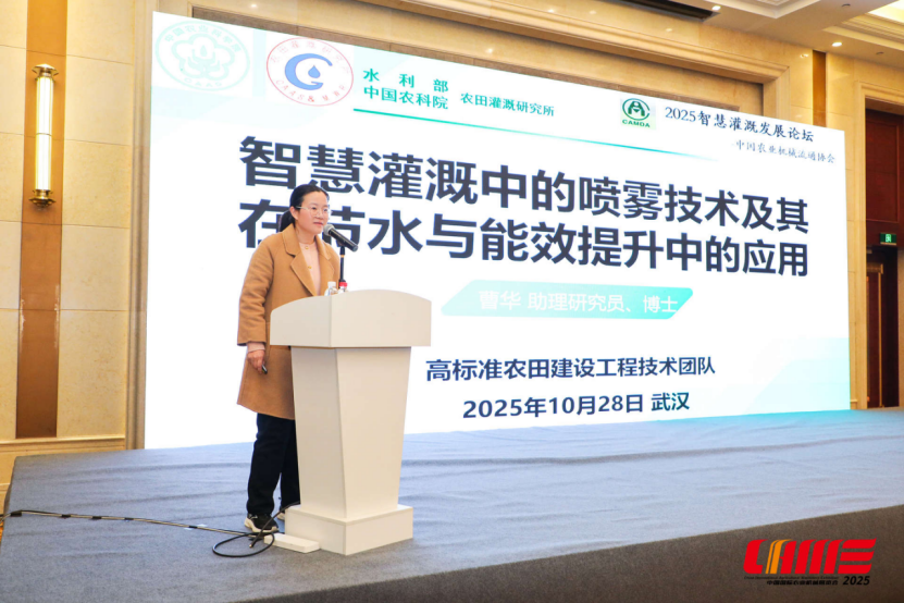 中国农业科学院农田灌溉研究所曹华博士作报告:智慧灌溉中的喷雾技术及其在节水与能效提升中的应用。