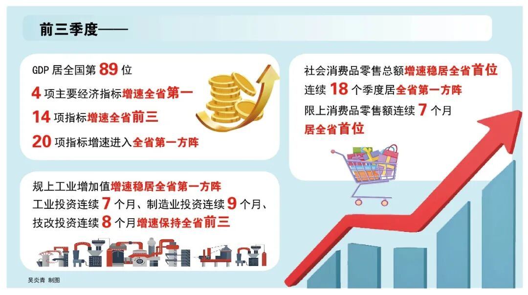 看增速,4项主要经济指标增速全省第一,14项主要指标增速全省前三,20项主要指标增速进入全省第一方阵。