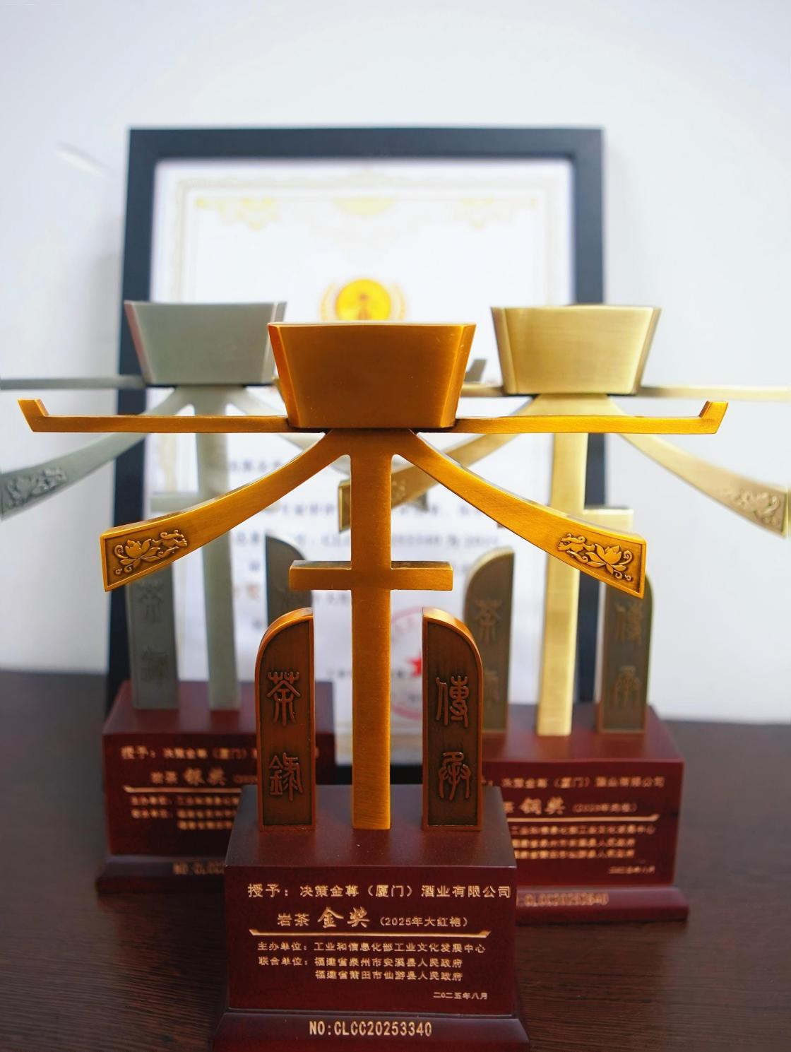 决策者茶凭借卓越品质与深厚底蕴,荣获“一金一银一铜”三项大奖,获奖茶品包含:“决策者大红袍”荣获“2025年大红袍”组岩茶金奖、“决策者金老枞”荣获“2025年水仙”组岩茶银奖、“决策者金肉桂”荣获“2025年肉桂”组岩茶铜奖。三款产品均源自武夷山核心正岩产区,体现了决策者茶在原料源头、制茶工艺的优秀实力。
