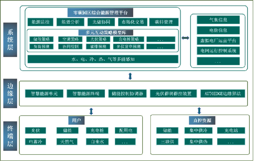 邵俊松:我们采用系统层-边缘层-终端层三层架构设计,通过各层级协同联动,实现园区多种能源的高效管控与优化运行。这个架构最大的优势是实现了四大核心功能: