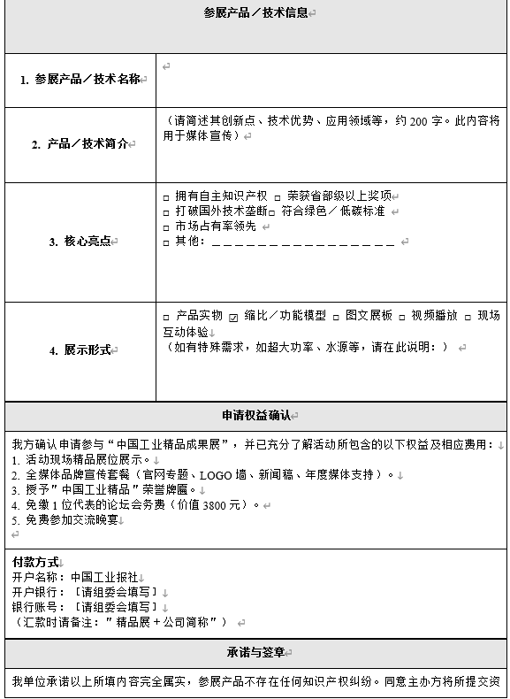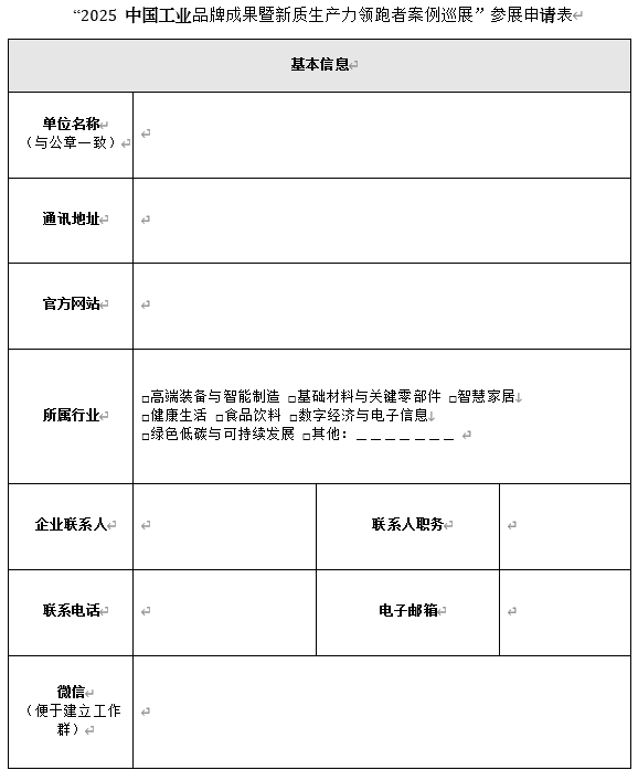附件:“2025中国工业品牌成果暨新质生产力领跑者案例巡展”参展申请表