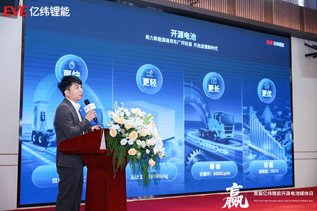 本届媒体日由亿纬锂能战略MKT总经理叶婉柔主持。亿纬锂能副总裁、商用车电池产品线总裁江吉兵博士作为首位演讲嘉宾登台,向在座来宾系统地介绍了开源电池品牌愿景和发展战略。