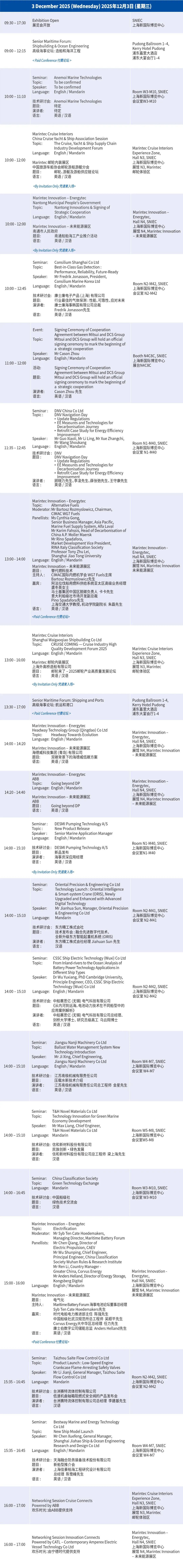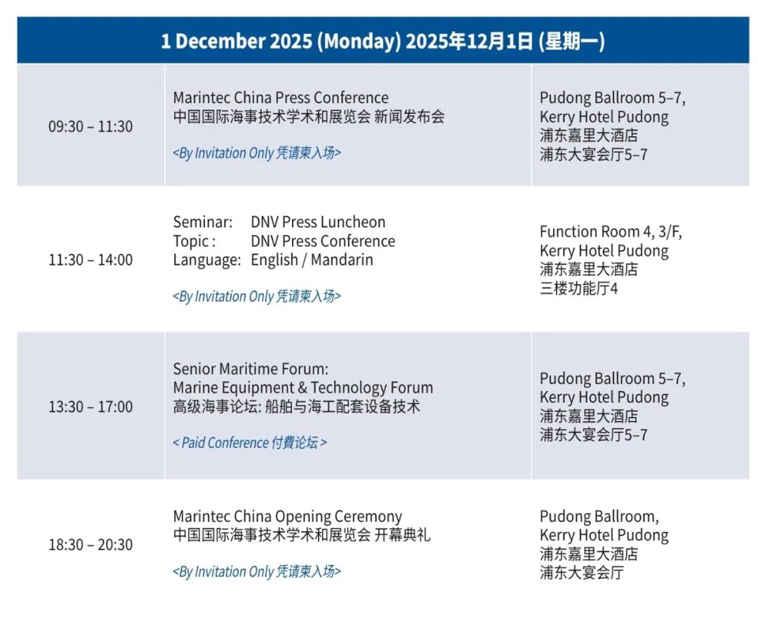 2025年12月1日~5日,在展会之外,Marintec各参与方精心策划了一系列精彩纷呈的同期活动,旨在为您打造一个全方位、深层次的交流平台,期待您的参与。