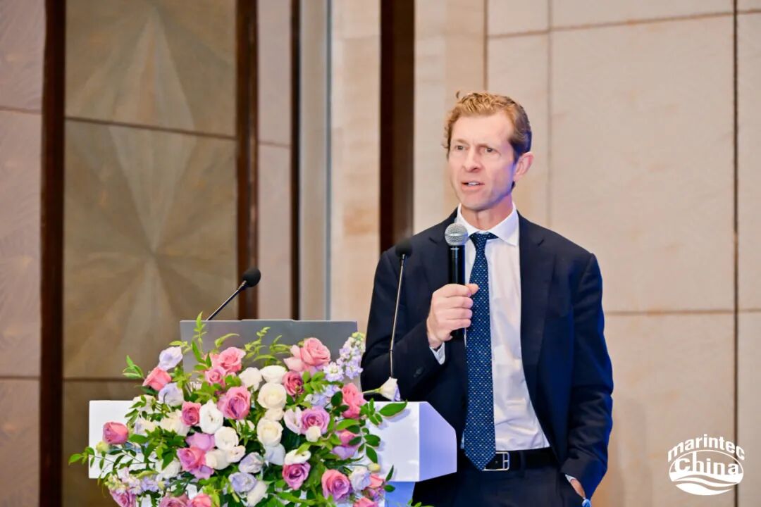 修弗斯润亩科技创始人兼首席执行官诺亚·西尔伯施密特就《评估能源效率:能源效率技术如何支持海事行业的脱碳目标》展开演讲,他表示,多年来,海事领域的关注点一直聚焦于加快推广未来燃料,以实现航运业的脱碳目标。尽管国际海事组织海洋环境保护委员会于2025年10月份的特别会议未能如预期般提供明确的政策指引,但航运领域的多方利益相关者已经、并将继续利用可行的解决方案应对脱碳挑战。作为一家空气润滑供应商,修弗斯润亩科技评估了燃料无关型节能技术在全球船队中的兴起和日益普及,以及由此对设备制造商、船厂、船东、运营合作伙伴带来的机遇和风险。他在演讲中结合修弗斯润亩科技的实践经验,对燃料无关型节能技术的应用效果进行了客观评估,并就能源效率领域相关从业者如何加强合作、协同推进脱碳目标实现展开了深入探讨,为行业提供了非燃料依赖型的脱碳新思路。