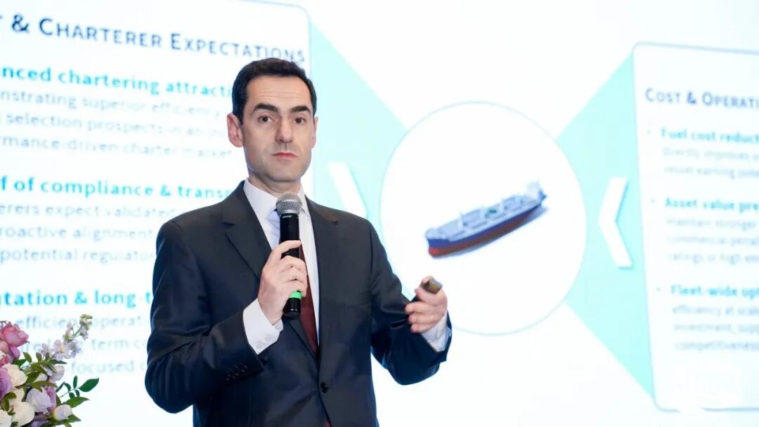 劳氏船级社全球散货船业务总监尼科斯·卡卡利斯以《能源效率:从组件到系统,从船舶到船队》为题发表演讲。他表示,全球和区域环境法规日新月异,船东和运营商都在寻求各种途径以尽量减排、提高燃油效率并赢得商业优势。对于每位船东和运营商而言,提升运营效率的路径各不相同,解决方案也多种多样,从安装单体节能设备、采用先进的替代燃料、全面优化新造船设计,直至船队整体的分析和优化。他强调,对各类减排方案进行科学、稳妥的评估,是确保技术应用与企业商业目标、运营需求高度契合的关键,提出应建立“组件—系统—船舶—船队”的全维度评估框架,通过系统性思维整合各类技术与管理手段,实现能源效率的最大化提升,为船东和运营商提供兼具环保效益与商业价值的解决方案。
