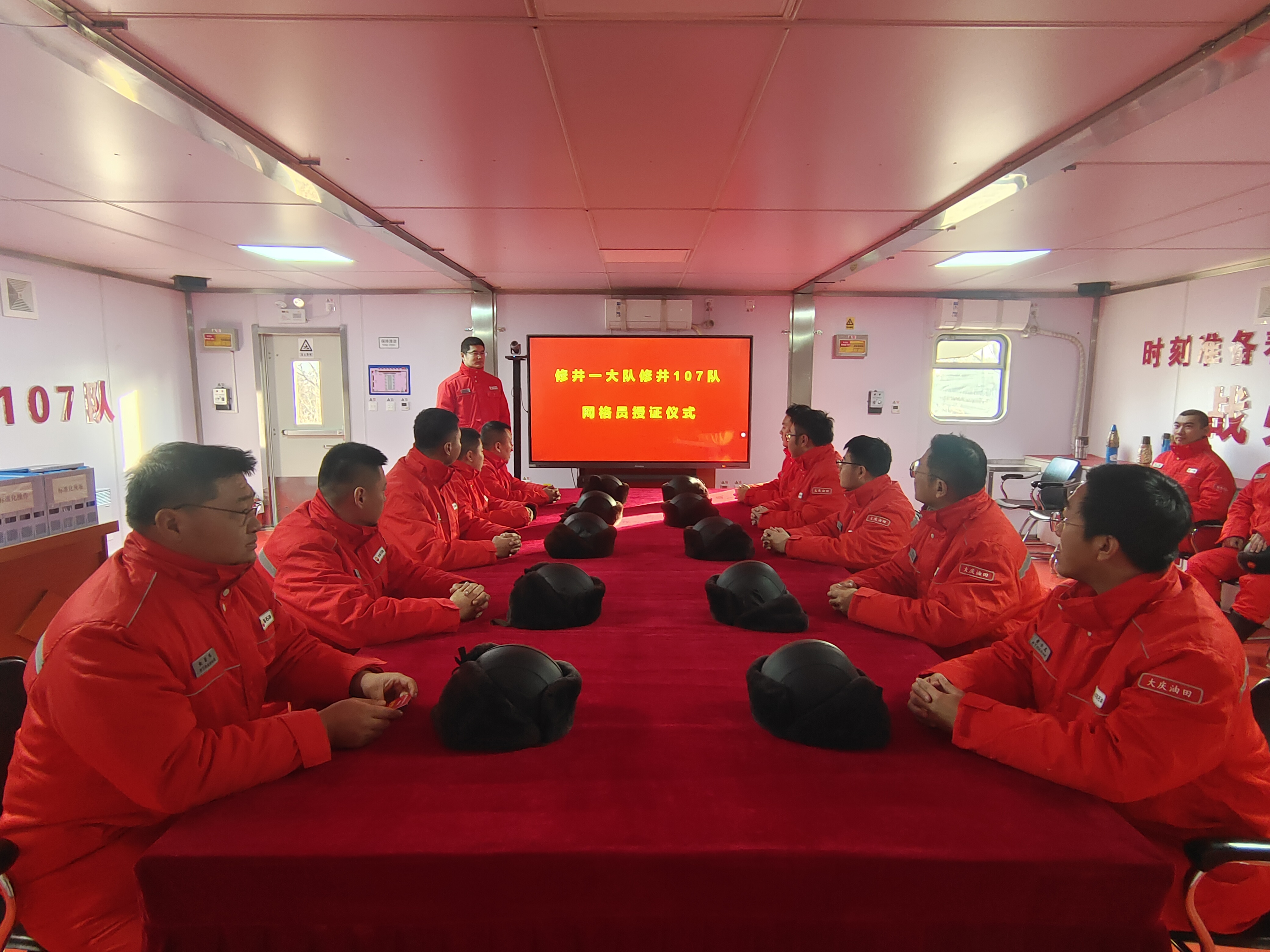 近年来,修井107队深入落实油田公司红色网格建设相关部署,聚焦移动式作业“四个一”模式打造,形成红网运行新模板。为了更加深入地推动红色网格模式落实落地,切实将网格员的身份认同转化为行动自觉,修井107队举办网格员授证活动,让网格责任更清晰、运转更高效、全员参与热情更高。