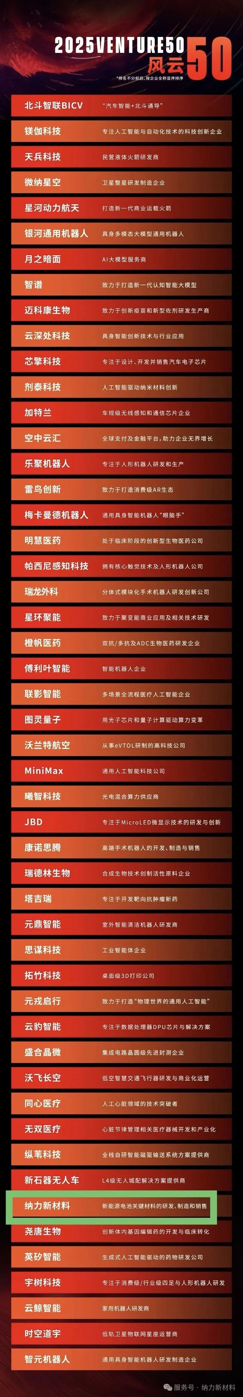 作为中国高成长企业投资风向标,VENTURE50榜单中,扬州纳力新材料科技股份有限公司(简称“纳力新材料”)是新能源赛道的唯一上榜者,实力获得业界认可。