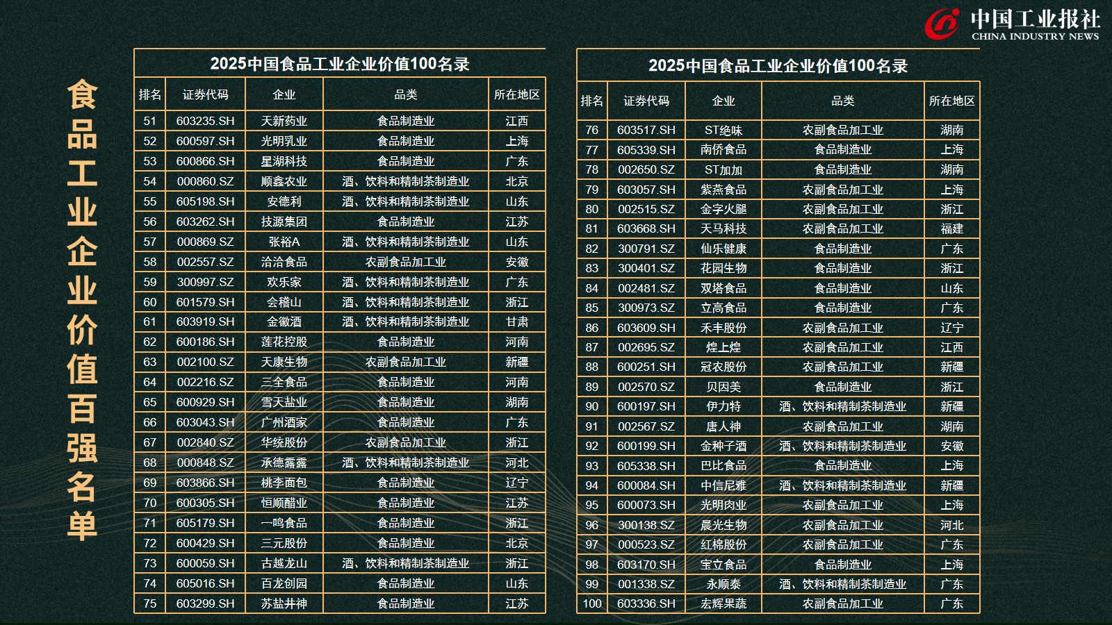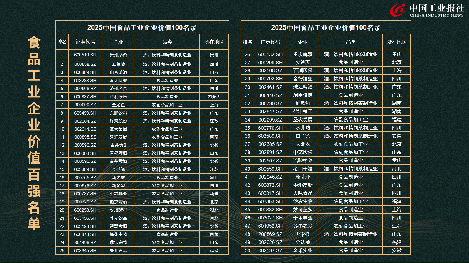 总的来看,价值100名录不仅是对过去成就的肯定,更是未来的风向标。它预示着,“十五五”期间,食品工业的竞争将彻底告别单一维度的厮杀,转而进入一个品牌、创新、可持续发展与产业链协同的综合价值较量时代。(王棕宝)