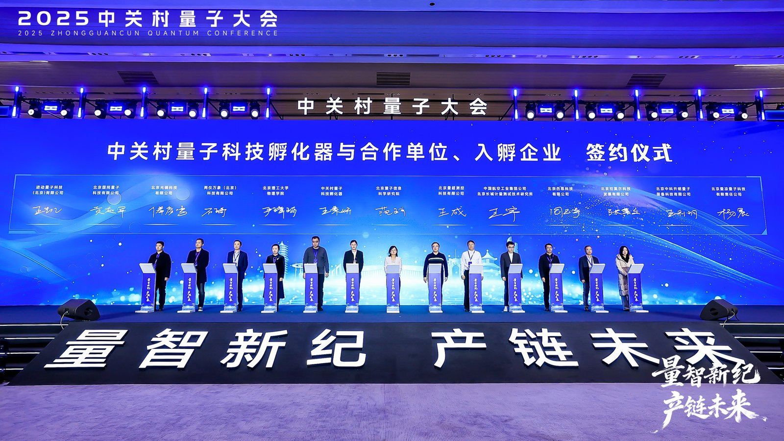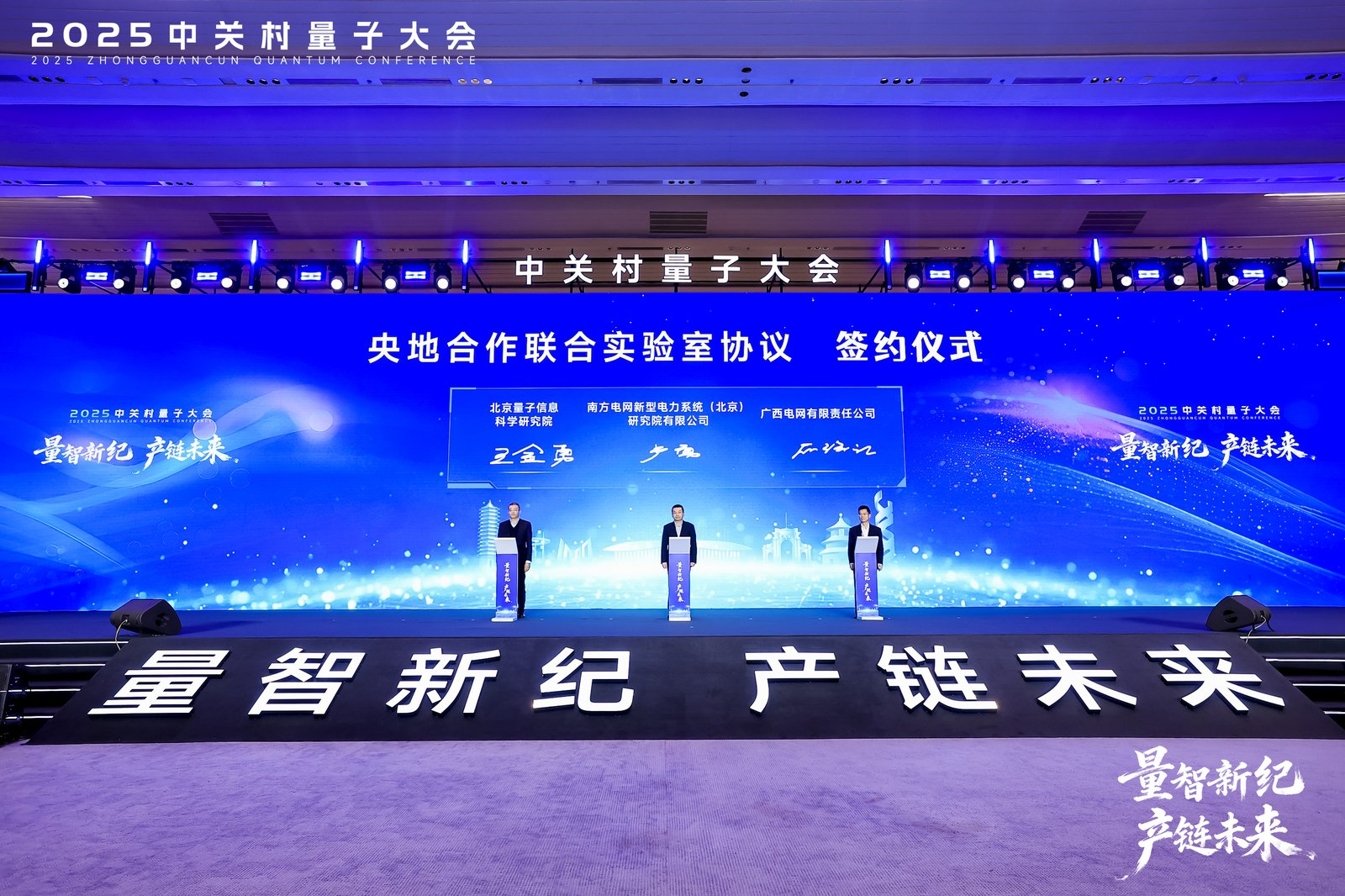 签约环节同样高潮迭起,北京量子信息科学研究院、南方电网新型电力系统(北京)研究院有限公司、广西电网有限责任公司签署战略合作协议、组建央地创新联合体,推动量子技术在能源领域深度落地;中关村量子科技孵化器与合作单位、入孵企业集中签约,加速科技成果本地转化,强化“科研机构-企业-政府”协同,加速技术转化与产业集聚。