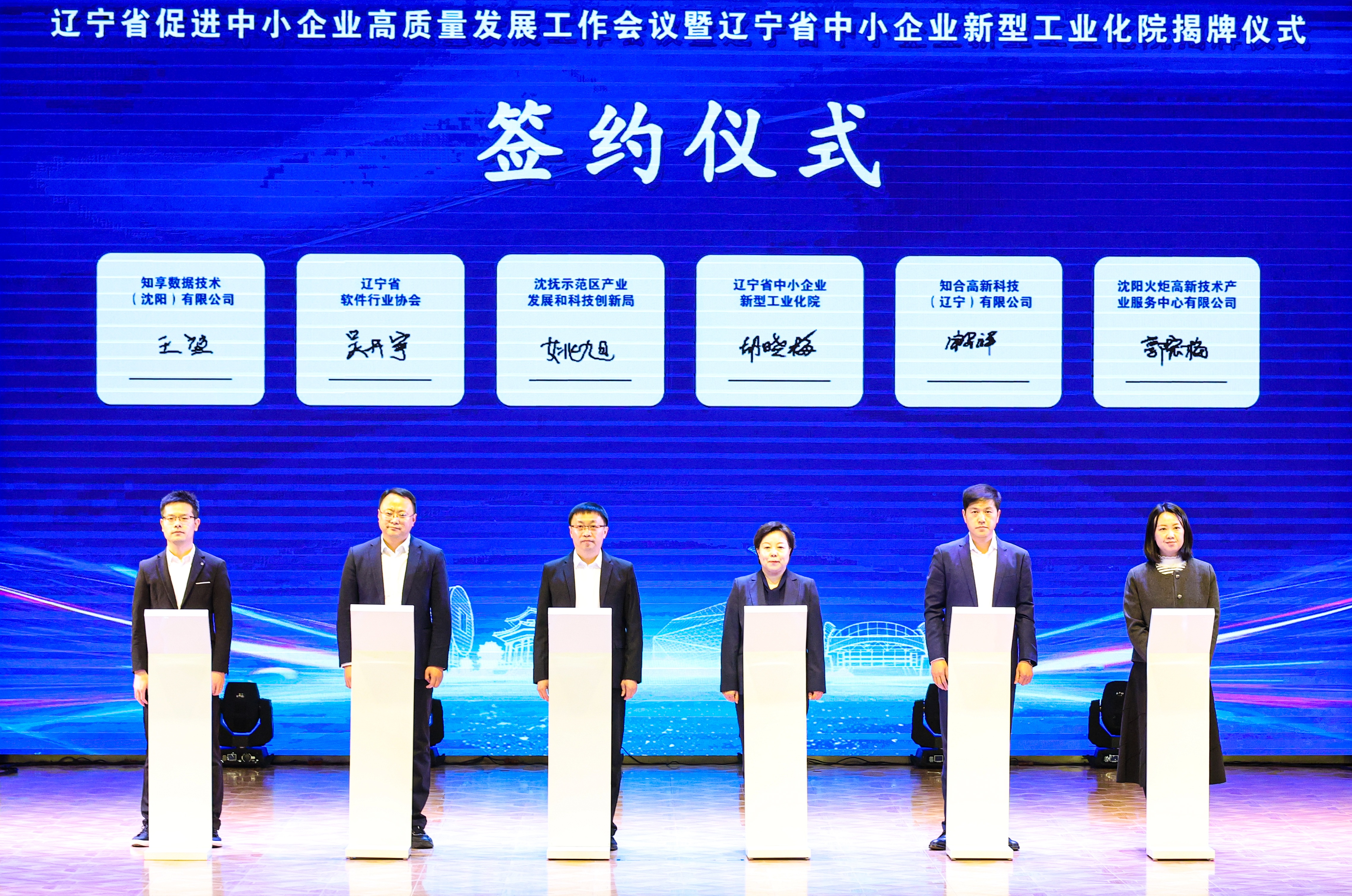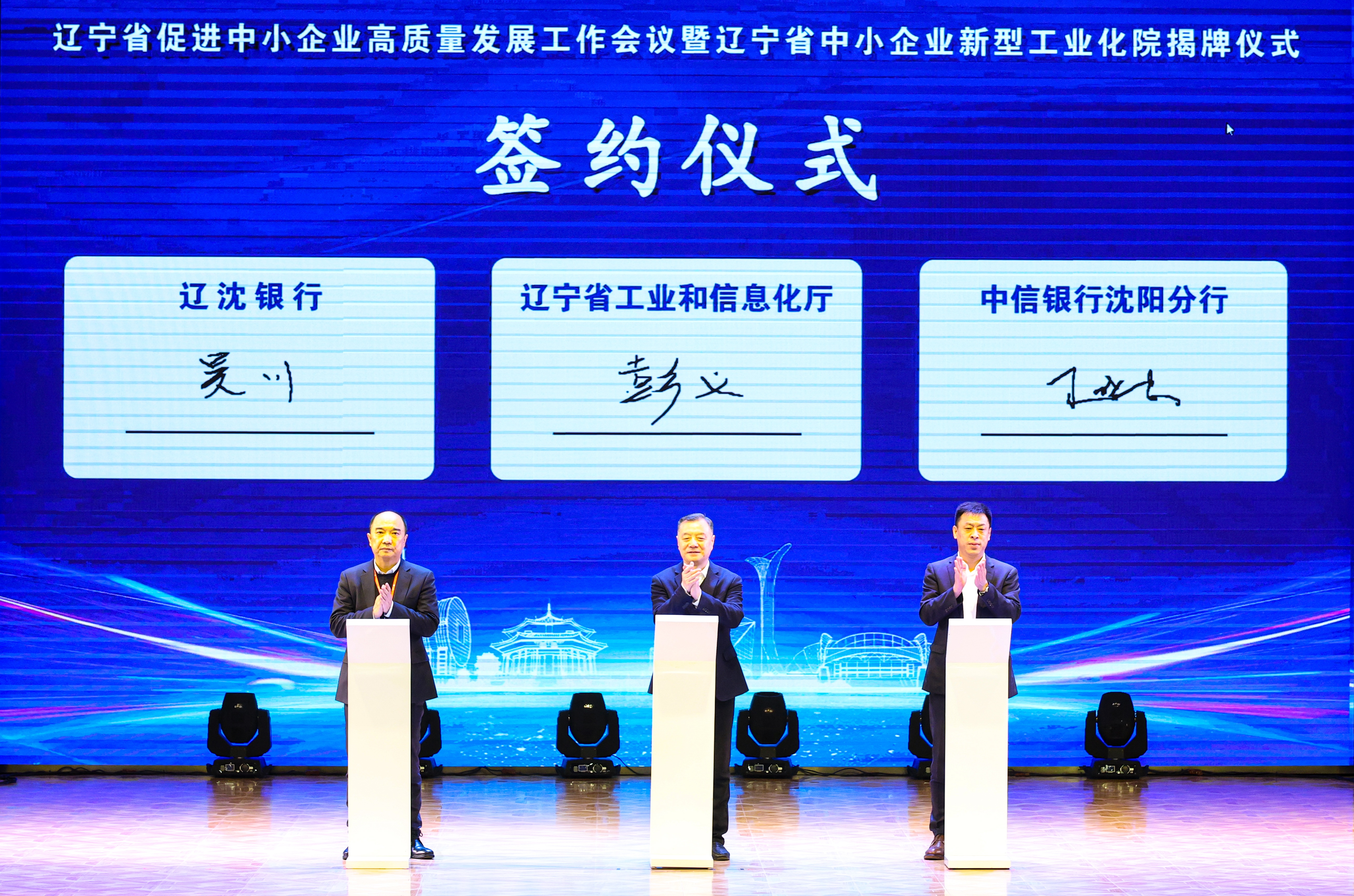 仪式上,王利波与王兆宝共同为辽宁省中小企业新型工业化院揭牌。辽宁省工信厅与中信银行沈阳分行、辽沈银行签订战略合作协议。沈抚改革创新示范区产业创新局与辽宁省中小企业新型工业化院、辽宁省软件行业协会、知合高新科技(辽宁)有限公司、知享数据技术(沈阳)有限公司、沈阳火炬高新技术产业服务中心有限公司签署服务合作协议。