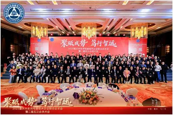 12月19日,“聚砥成势笃行智远——2025重庆市家用电器服务企业联合会(下称:‘联合会’)年会暨二届五次会员大会”在重庆成功举行。本次大会邀请了相关部门领导、全国家电行业权威机构代表、知名专家学者、友好协会伙伴、优秀企业代表、全体会员单位及媒体代表参加,共商行业发展大计,展望智能时代新未来。