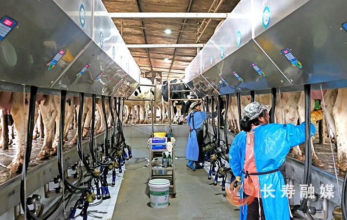清晨6点半,薄雾中的长寿区石堰镇大塘村还未完全苏醒,村民周瑜骑着电动车便来到蒙润奶牛场。更衣、消毒等一系列流程后,他熟练地将首批60头荷斯坦奶牛赶向自动化挤奶厅,一天的工作就此开始。