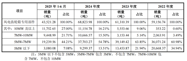 公司当前覆盖1-22MW风电机组功率范围,在行业内处于领先地位。2024年全球风电新增装机量达117GW创十年新高,其中中国占比68%。在此背景下,锡华科技大兆瓦产品占比显著提升:7MW及以上产品销量占比从4.09%跃升至48.72%,10MW及以上产品占比达27.00%,完美契合风电机组大型化趋势。公司手握117项授权专利,含27项发明专利,技术成果转化能力突出,其研发的大兆瓦海陆风电产品,已通过南高齿、弗兰德、德力佳、采埃孚等全球顶级齿轮箱制造商严苛验证,成为风电行业技术升级的重要支撑。